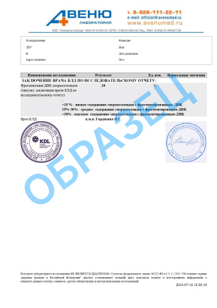 А27.21.001 Оценка фрагментации ДНК сперматозоидов