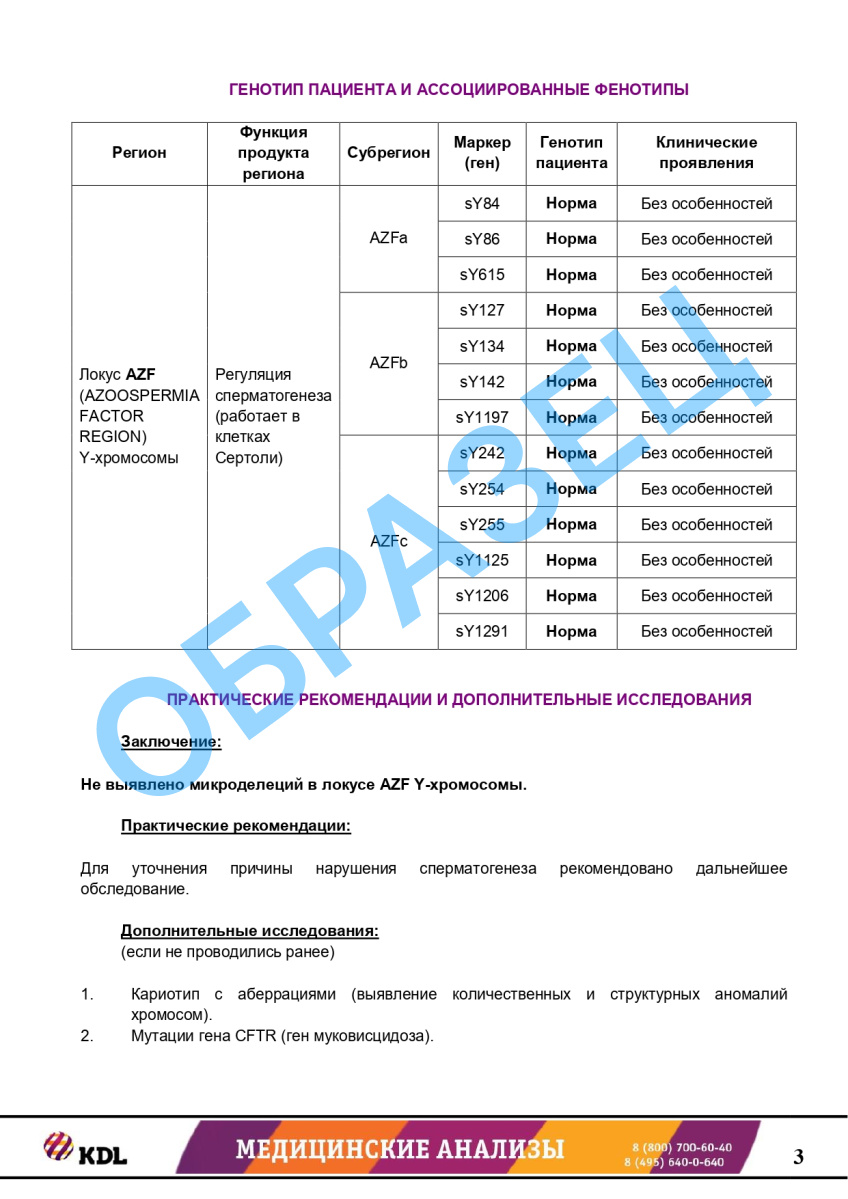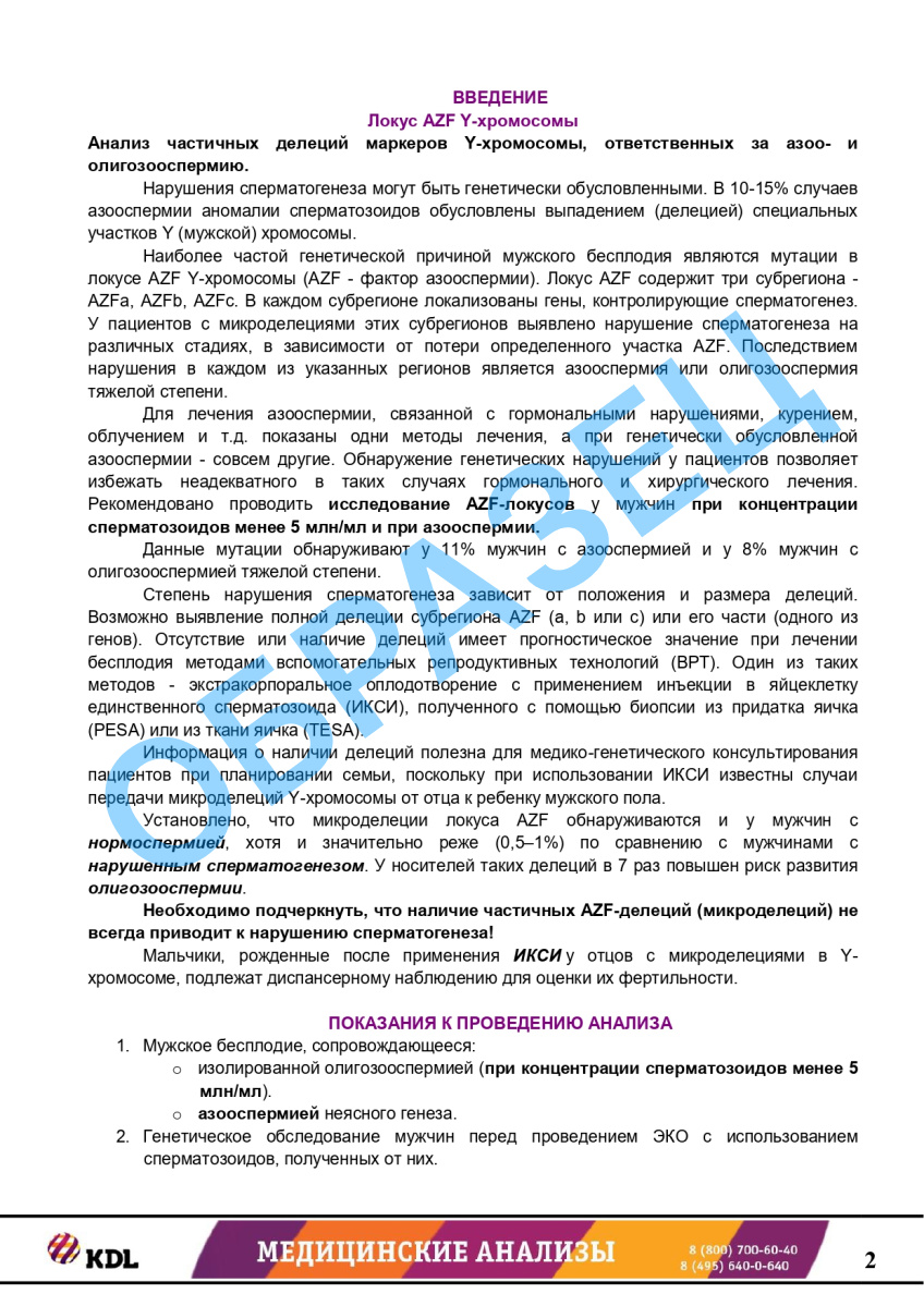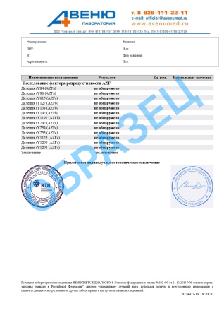 Выявление микроделеций в факторе азооспермии AZF (локусы A, B, C)