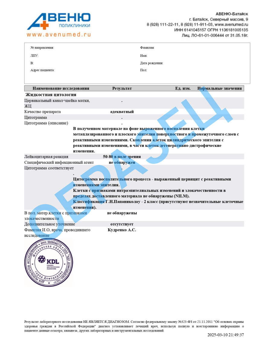 A08.20.017.002 Жидкостное цитологическое исследование микропрепарата шейки матки
