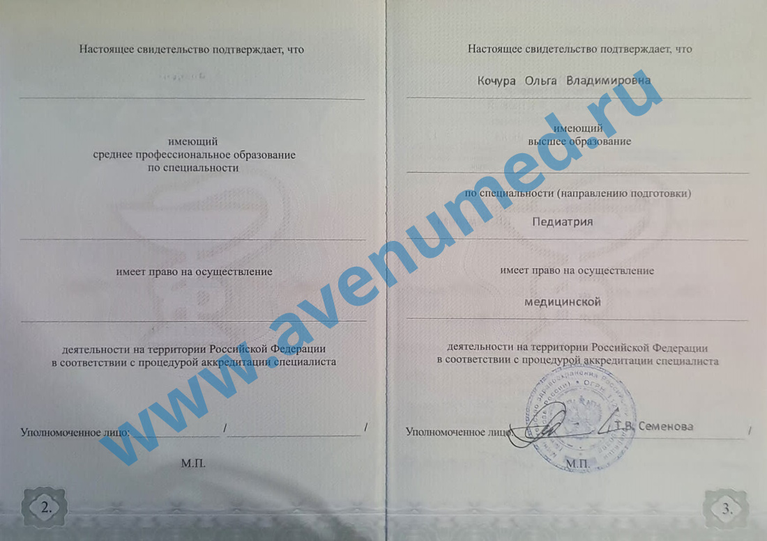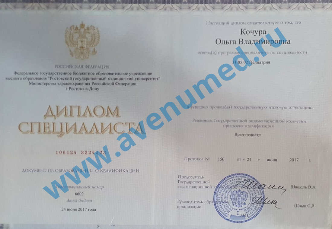 - 2017 г. - Ростовский государственный медицинский университет по специальности "Педиатрия"