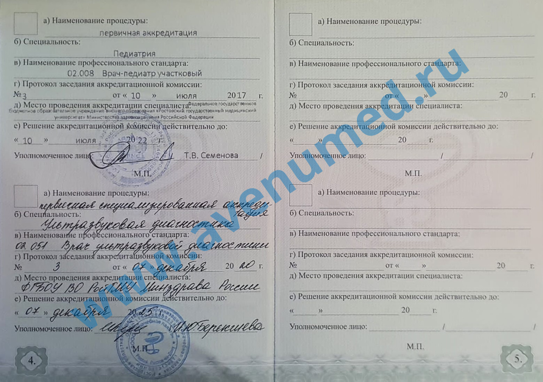 - 2020 г. - первичная переподготовка по ультразвуковой диагностике, РостГМУ