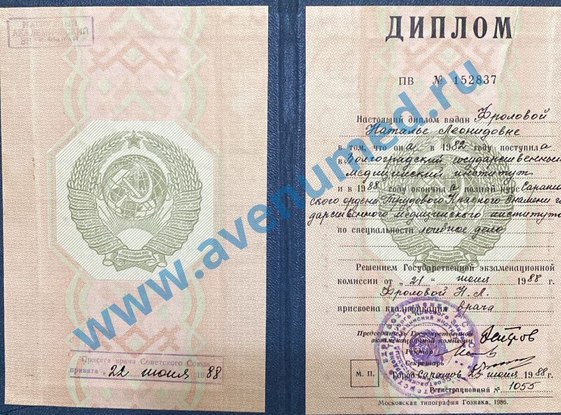 • 1988 г. - Саратовский государственный медицинский университет им. В.И. Разумовского по специальности "Лечебное дело".