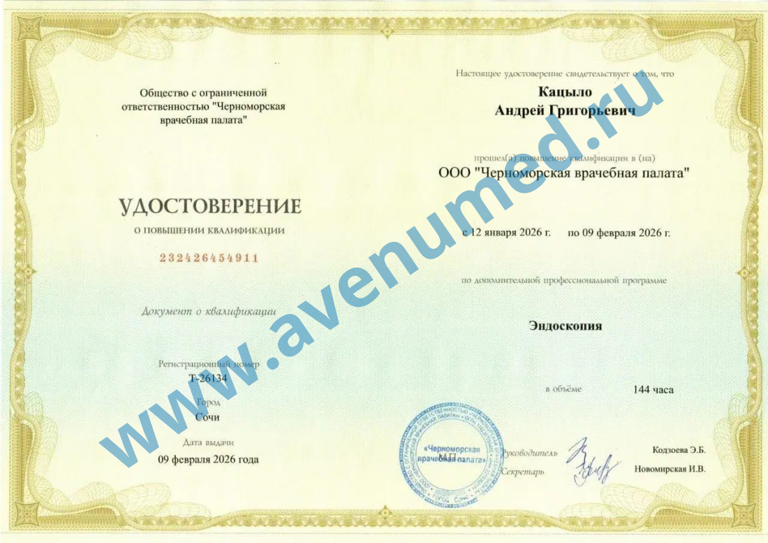 - 2004 г. - «Актуальные вопросы эндоскопии» (ФЭГДС, ФКС) Ростовский государственный медицинский университет.
