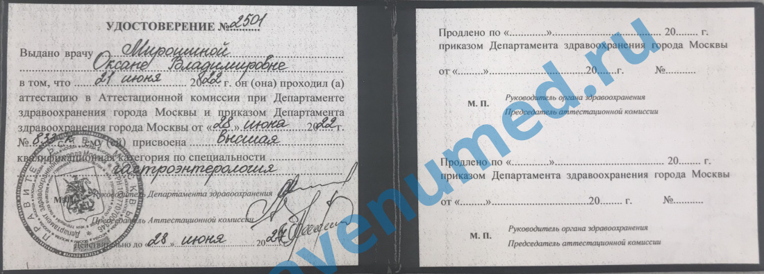 • 2015г. - курсы повышения квалификации по гастроэнтерологии