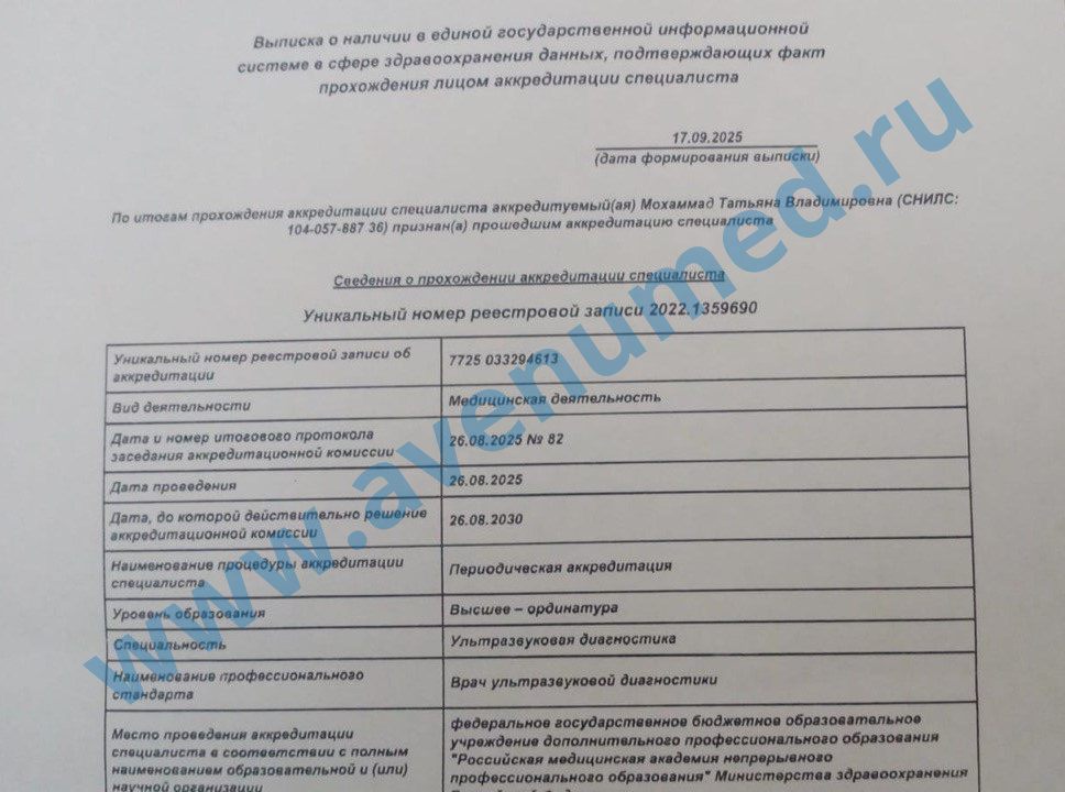 Отзывы о враче Мохаммад Татьяне Владимировне