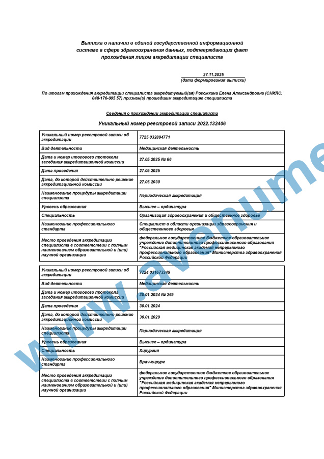 - 2016г. - профессиональная переподготовка РостГМУ «Организация здравоохранения и общественное здоровье»