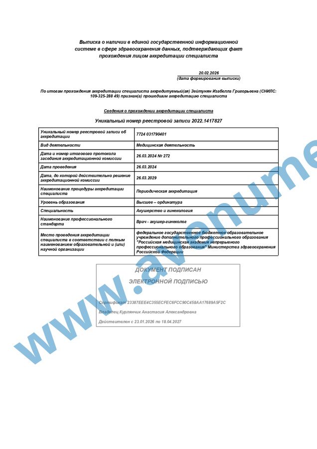 - 2000 - 2002 гг. - ординатура по акушерству и гинекологии, РостГМУ