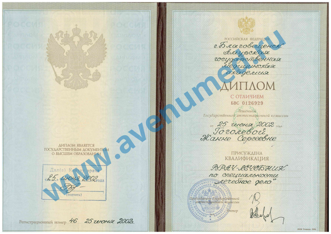 • 2002 г. - Амурская государственная медицинская академия по специальности "Лечебное дело".